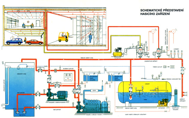 Sprinklerové zařízení je určeno k rychlé likvidaci ohnisek požáru, a to především v počátečních fázích jeho vzniku. Toto zařízení se skládá ze zdroje vody a sprinklerové soustavy, přičemž ona soustava se dále skládá z ventilových stanic, potrubních rozvodů a sprinklerových hlavic.